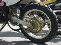 ![]() リアは3XPDTのスイングアーム、同ホイールを装着しました。念願の18インチにやっとなりました。 |